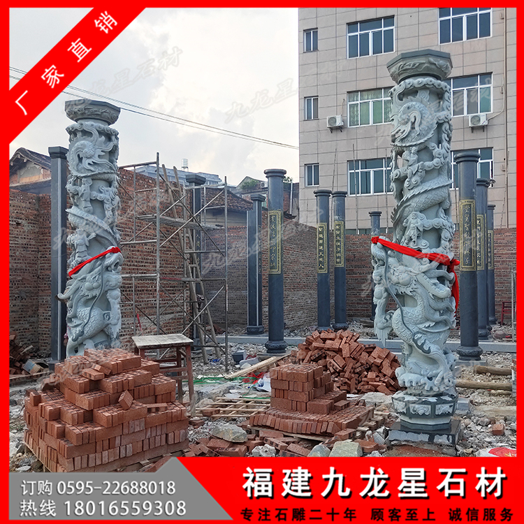 - 2022-08-19 羅源青石雕龍柱 寺院盤(pán)龍柱雕刻