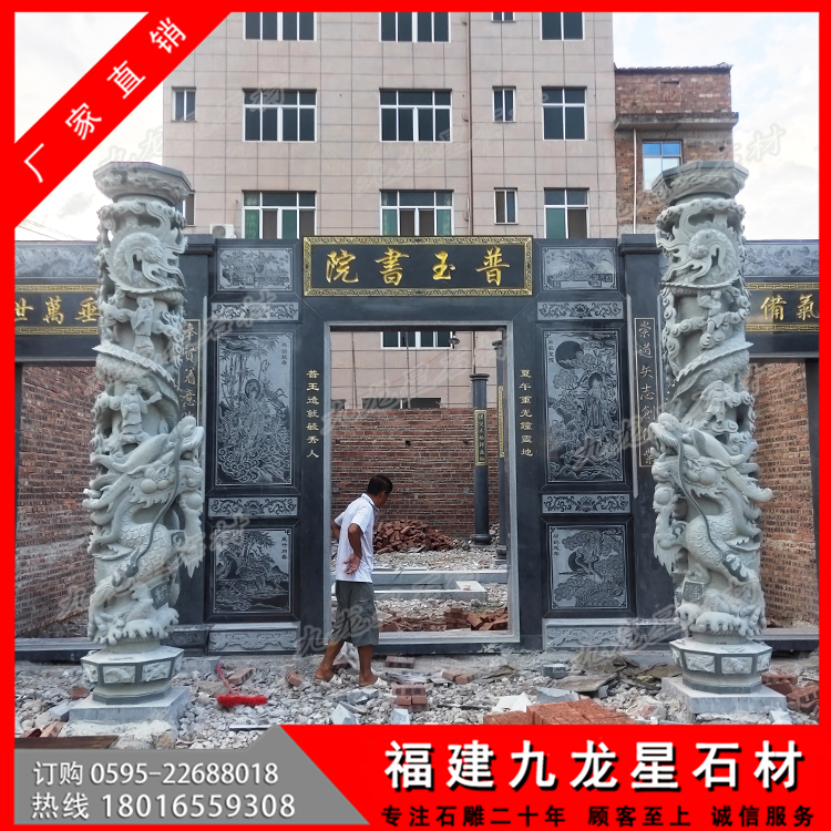莆田普玉書(shū)院芝麻黑石材圓柱 青石雕龍柱