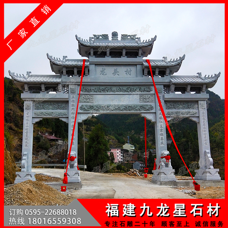 村口石牌坊便是建造在農(nóng)村入口的石牌坊、石牌樓,在鄉(xiāng)村石牌樓的限度精準(zhǔn)定位上,要考慮到人視覺(jué)效果認(rèn)知、石牌樓、周?chē)h(huán)境中間的關(guān)聯(lián)。