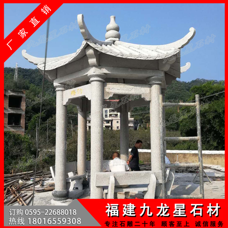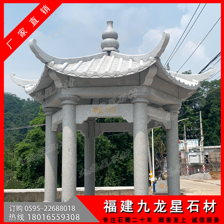 石亭子就各自帶有非常顯著的不同特色,而同時(shí)也必然受到所用石材特性的限制。比如花崗巖的色彩豐富,硬度較高比較適合在室外安裝,但是它的耐火性就比較差一些,那么就不適合安裝在比較干燥的公園。如果是使用青石的話,它的顏色讓就是石亭子的一個(gè)局限,青石主要是以灰和灰白顏色為主,比較適合安裝在比較古香古色的公園內(nèi)。