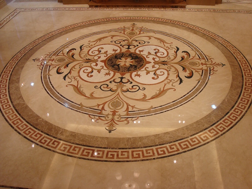 大理石拼花石材拼花,其實(shí)可以看做是馬賽克工藝的一種發(fā)展和延伸,是馬賽克工藝和新的加工工藝和技術(shù)相結(jié)合的而衍生出的新的石材產(chǎn)品。像早期的石材拼花,主要是石材板材類產(chǎn)品的拼組,這可以看成是放大版的石材馬賽克,而后期由于水刀技術(shù)的應(yīng)用和加工精度的提升,石材拼花把馬賽克的鑲嵌工藝發(fā)揮到了極至,形成了自己獨(dú)特的風(fēng)格。不過(guò)在國(guó)外石材拼花還是屬于石材馬賽克的范疇的。