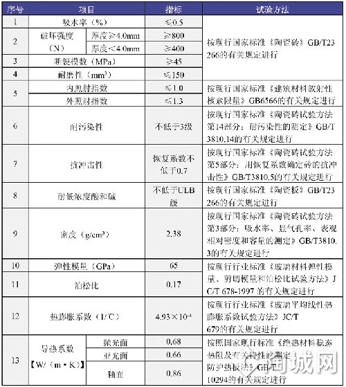 表2 建筑陶瓷薄板的性能指標(biāo)