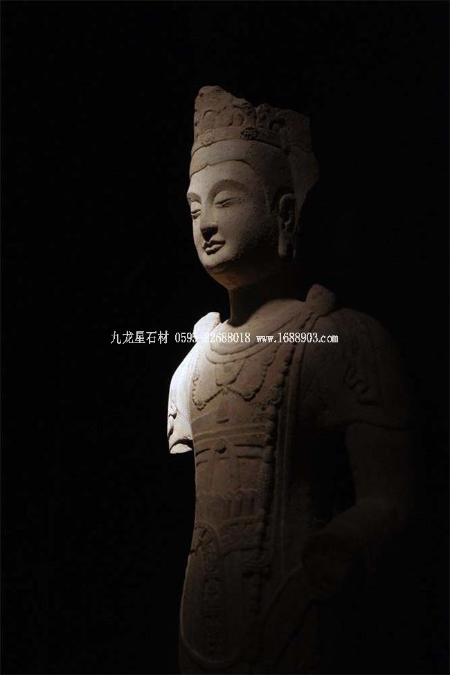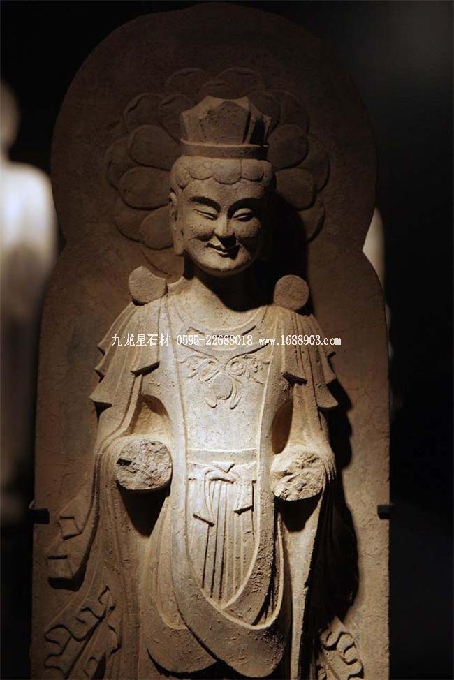 北魏、北齊時期,佛像雕刻藝術(shù)趨于巔峰極致之境界。北魏佛像造型挺拔秀美,細腰寬背,衣紋是富于裝飾的淺刻。北齊造像多為面型豐腴,衣紋簡潔,服薄貼體,整體平潤光潔,與面部寧靜安祥的表情和諧一致。這類疏簡淳潤的佛像造像,無論從光潔的肌體或平滑衣物里,似乎都能感覺到內(nèi)部筋肉的輕微變化。潤澤的體面與舒緩下垂的線條,使形象在疏簡平淡中流露出內(nèi)在的氣質(zhì)。