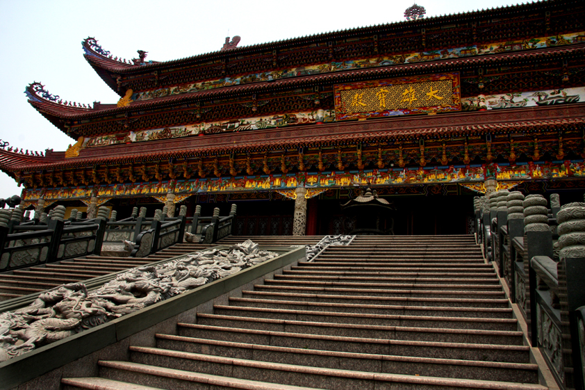 主體建筑大雄寶殿平面呈邊長(zhǎng)80米的正方形,超過(guò)故宮太和殿與山東曲阜孔府大成殿的規(guī)模,號(hào)稱“亞洲第一殿”。