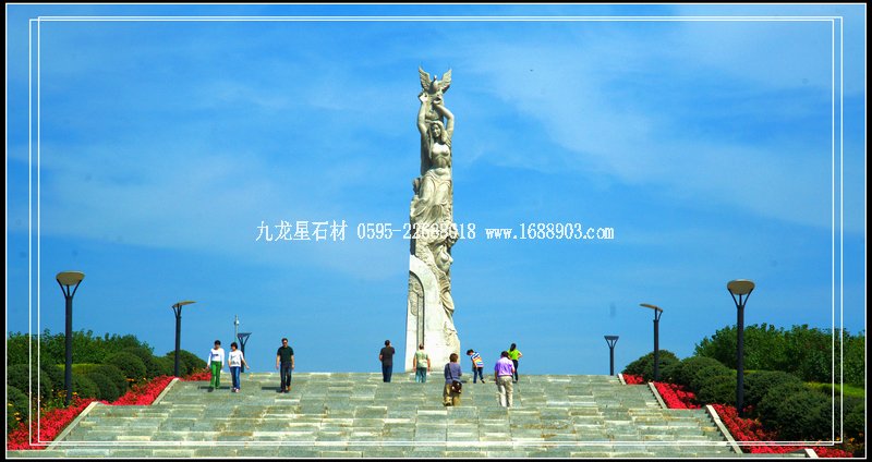完美體現(xiàn)“友誼·和平·春天”的主題雕塑塔,由國內(nèi)著名雕塑大師葉毓山、潘鶴、程允賢、王克慶、曹春生共同創(chuàng)作完成。塔高29.5米,由少女、鮮花與和平鴿組成,周圍環(huán)繞著反映五大洲民族風(fēng)情的五組鑄銅人物雕像和漢白玉浮雕,造型精美,氣勢壯觀,榮獲第三屆全國城市雕塑建設(shè)成就展優(yōu)秀作品獎(jiǎng)。