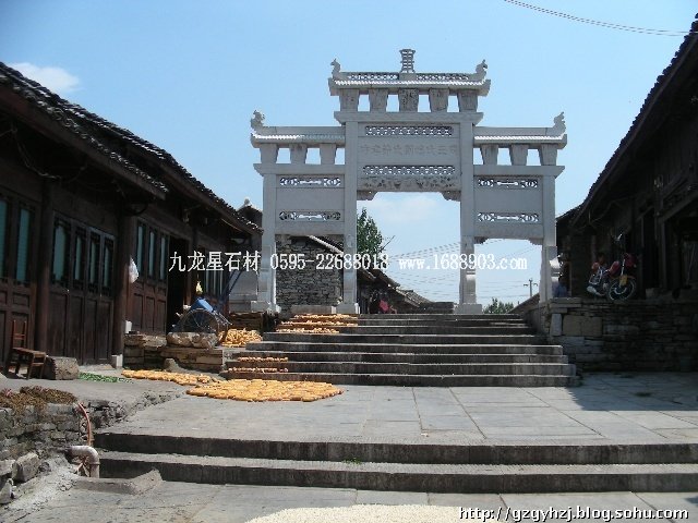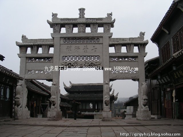 上網(wǎng)查閱了一下關(guān)于牌坊的資料:牌坊,是封建社會為表彰功勛、科第、德政以及忠孝節(jié)義所立的建筑物。牌坊就其建造意圖來說,可分為四類:一是功德牌坊,為某人記功記德。 二是貞潔道德牌坊,多表彰節(jié)婦烈女,三類是標志科舉成就的,多為家族牌坊,為光宗耀祖之用。四類為標志坊,多立于村鎮(zhèn)入口與街上,作為空間段落的分隔之用。