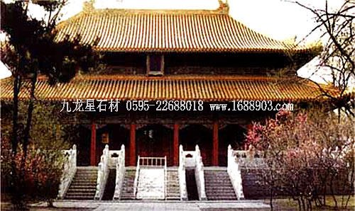 孔廟位于山東省曲阜市南門內(nèi),是歷代祭祀孔子的廟宇,建筑規(guī)模宏大,雄偉壯麗。其平面呈長方形,總面積327.5畝,南北長1120米。整個孔廟的建筑群以中軸線貫穿,左右對稱,布局嚴謹,共有九進院落。全廟共有五殿、一祠、一閣、一壇、兩堂、十七碑亭、五十三門坊,共計有殿廡四百六十六間??讖R內(nèi)最為著名的建筑有:欞星門、二門、奎文閣、杏壇、大成殿、寢殿、圣跡堂、詩禮堂等。杏壇,傳為孔子講學處,壇旁一株古檜,稱“先師手植檜”;大成殿為孔廟的主殿,殿內(nèi)正中奉祀孔子塑像,兩旁為4配和12哲的塑像;東西廡殿原供孔子弟子及儒家歷代先賢;故宅井后的“魯壁”為秦始皇焚書坑儒時,孔子第九代孫孔鮒收藏《尚書》、《禮記》、《論語》、《孝經(jīng)》等書的夾墻。孔廟與孔府、孔林并稱“三孔”,是中國現(xiàn)存最大的四大古建筑群之一。