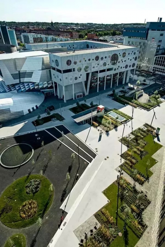 Aalborg Waterfront II是該景觀項目的二期工程,此次設計依舊用景觀大道將周邊景致整合起來。在平坦的前灘后是一些凸起的小山丘,設計師從這些自然景色中獲取靈感,將基底抬高,上面建有連貫成片的臺階,既可以用于抵御洪水,又是可休憩的坐凳。項目中采用原生簡單的材料,在一系列的開闊廣場上種植了茂密的樹林。