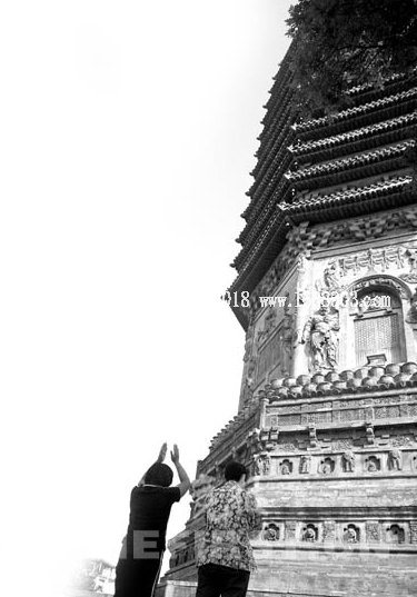 現(xiàn)在的天寧寺正在大修,平時(shí)是不開(kāi)門(mén)的,記者第一次去的時(shí)候就吃了閉門(mén)羹。守門(mén)的師傅說(shuō),每逢初一和十五才會(huì)開(kāi)放。