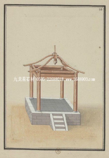 圖示 古代涼亭的建造過程