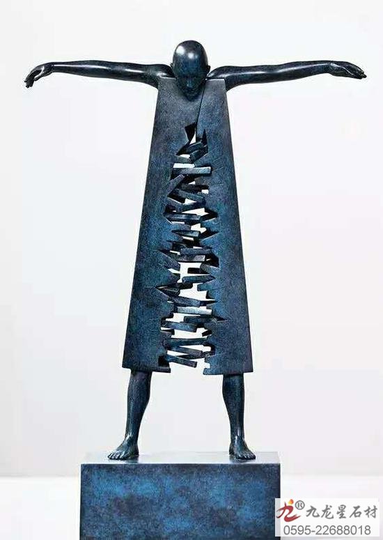 長(zhǎng)久以來一直以青銅雕塑為主要?jiǎng)?chuàng)作類別,自由流動(dòng)的形體和幾何形狀的結(jié)合構(gòu)成了半抽象半具象的雕塑形式,無論從動(dòng)作,節(jié)奏感還是細(xì)節(jié)上都無可挑剔,既充滿著西方的邏輯,又富含了東方的禪意,人們無法評(píng)價(jià)他的作品好與壞,因?yàn)闊o論是從物質(zhì)形體方面,還是其雕塑所包含的禪學(xué)意義來講,這都是以個(gè)人感受為主,仁者見仁,智者見智。