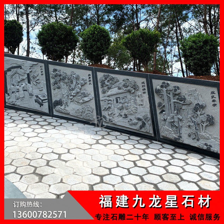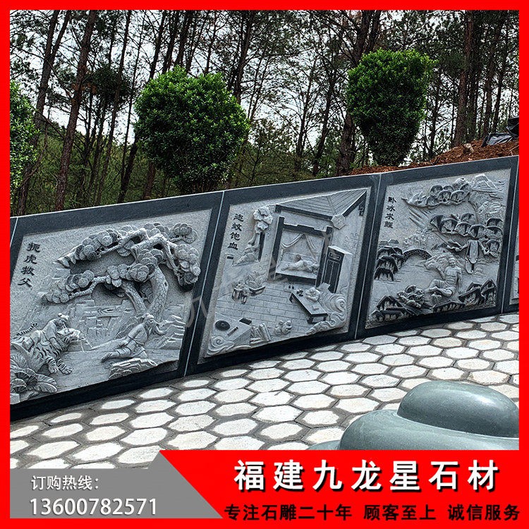本公司做為此項(xiàng)目的承接方,從設(shè)計(jì)、雕刻、運(yùn)輸、安裝施工一站式服務(wù),包含了涼亭、二十四孝浮雕,墓碑等整個工程。本套墓圍采用的優(yōu)質(zhì)的G654+青石,整個工程耗時三個多月,靠著過硬的產(chǎn)品質(zhì)量、細(xì)致的服務(wù)如期完成整套項(xiàng)目,深得客戶好評。