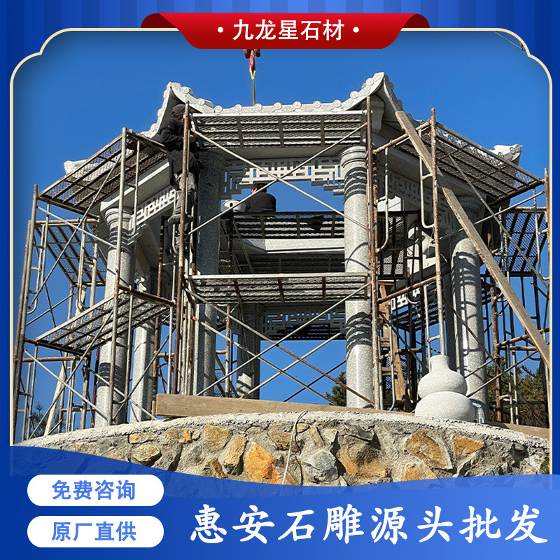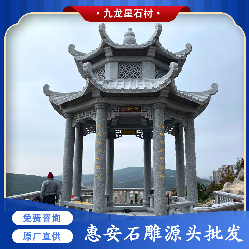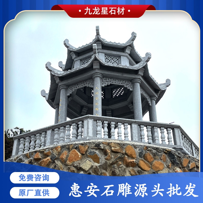 石雕涼亭的作用不僅可以作為休息點(diǎn)、休息區(qū),其實(shí)也是景點(diǎn)或者山間的一個標(biāo)志性建筑,美觀又不容易損壞,抗壓性強(qiáng)。今天主要帶給大家的是我們近期的案例——雙層惠安灰八角涼亭。