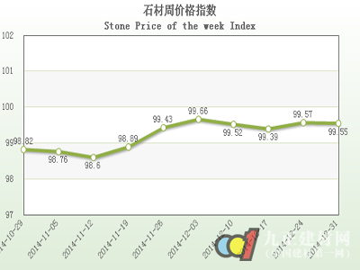 從12月石材周價(jià)格指數(shù)走勢(shì)圖看,本月石材周價(jià)格指數(shù)呈現(xiàn)小幅波動(dòng)調(diào)整、但總體趨于穩(wěn)定。