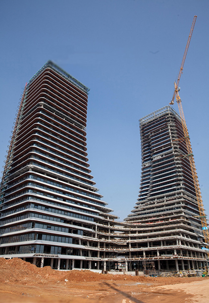 正在建設(shè)中的東南航運(yùn)總部大廈部分樓群來(lái)了個(gè)倒穿褲衩,又成為建筑史上一大亮點(diǎn)。