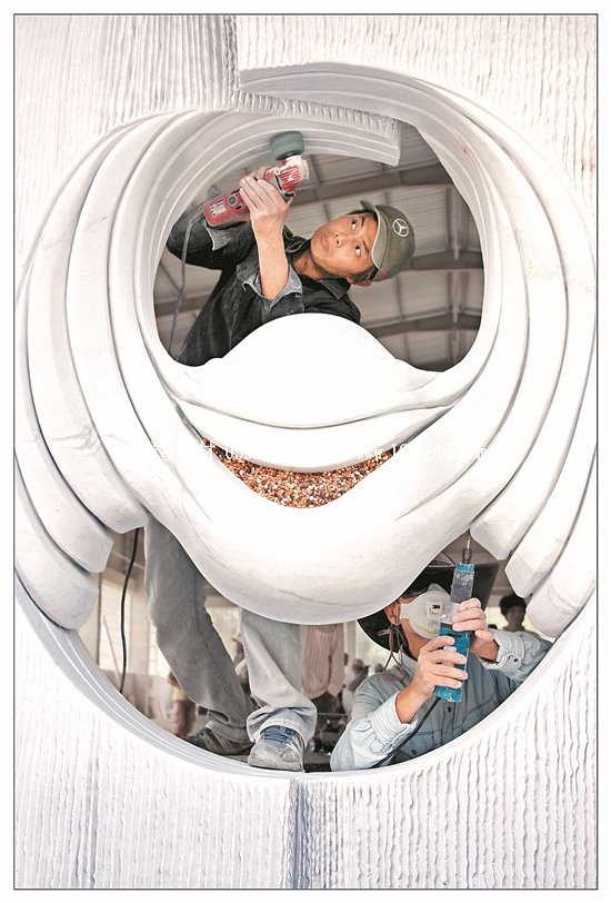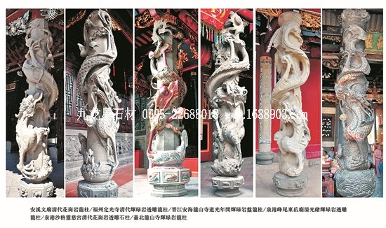 ——精湛技藝踏遍山河。在對(duì)惠安“世界石雕之都”的命名函中,世界手工藝?yán)硎聲?huì)如是寫(xiě)道:“惠安已成為國(guó)內(nèi)外產(chǎn)業(yè)規(guī)模最大、工藝水平最高、產(chǎn)品種類(lèi)最齊全、加工能力最強(qiáng)的石雕石材工藝品生產(chǎn)加工與出口基地?!迸c之相映生輝的,是惠安雕藝工匠們踏遍祖國(guó)山河,將作品和技術(shù)傳揚(yáng)至海內(nèi)外。此次攝影展中,就有不少攝影家們赴外地采風(fēng),用鏡頭將大江南北的惠安雕藝精品力作,仔細(xì)珍藏,拍下了《長(zhǎng)沙青年毛澤東雕像》、《中央革命根據(jù)地歷史博物館大型浮雕(江西省瑞金市)》、《沙縣淘金山舍利塔》等佳作。而《傳統(tǒng)石雕龍柱》更攝下臺(tái)北龍山寺、福州定光寺、安溪文廟、晉江安海龍山寺、泉港峰尾東岳廟、泉港沙格靈慈宮等多個(gè)寺廟的龍柱,拼為組圖,集中展現(xiàn)惠安石匠們的精湛技藝。