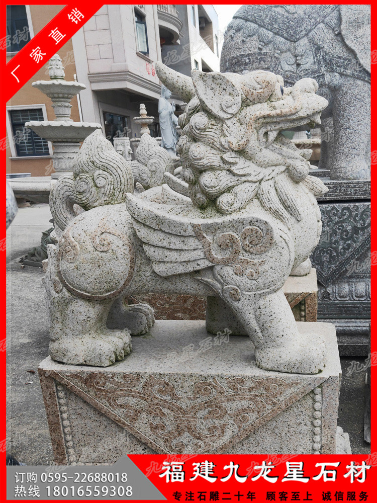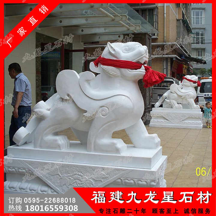 銀行門口石貔貅裝飾物從古到今都受到人們的親睞,不管是佩戴的,還是擺放的,貔貅的吉祥寓意可以為人們帶來財運、吉祥、好運和健康等。在古時候,人們常常將貔貅當做是保護人們的神獸,貔貅它的特點就是有嘴而沒有肛門,就是可以吞萬物而不泄, 銀行門口石貔貅的特點就是只進不出的意思,不但可以為人們招財進寶,還有著保護主人吉祥的功能。