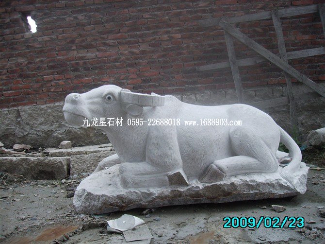 石雕耕牛采用整塊G633花崗巖雕刻而成,高0.75米,長1.4米。