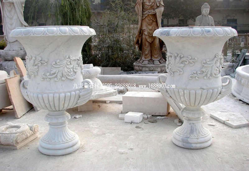 漢白玉花紋浮雕花缽高約600MM.更多造型尺寸皆