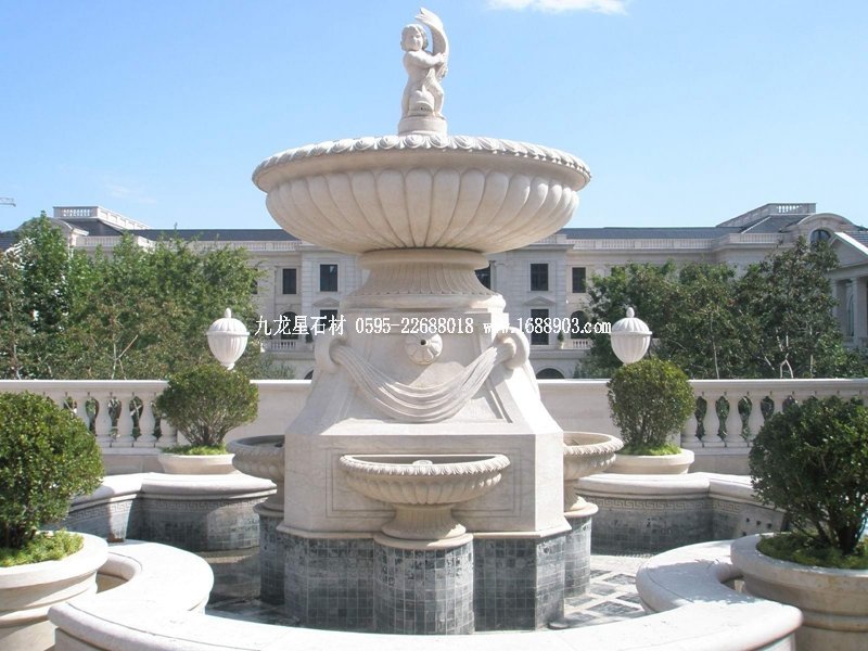 埃及米黃大理石水缽總高約3.6米,缽盤(pán)直徑為1.8米。
